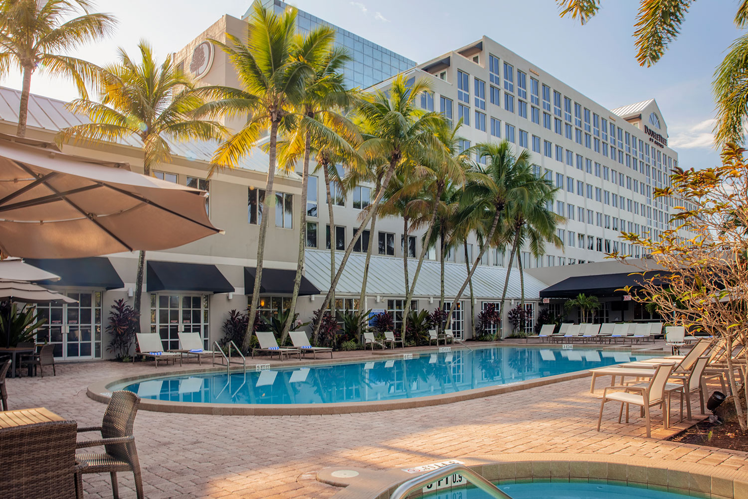 The DoubleTree Deerfield Beach/Boca Raton features 221 guest rooms and suites. The hotel is just over a mile from the pristine, sparkling beaches of Florida’s gold coast. With a prime location midway between Fort Lauderdale and Palm Beach, the hotel is just 25 minutes from either city International Airport. Our complimentary van service will transport your guests to any destination within 5 miles of the hotel including beaches, shopping, dining championship golf courses, movies, museums, nightlife, and more. Enjoy breakfast in our poolside Bobby Bahia’s Restaurant. Our Gastro Pub The Spotted Stag serves American Cuisine for Lunch or Dinner. Starbucks Coffee is available in our Market Place Pantry. Additional features include High-Speed Wireless internet throughout the hotel, a 24-Hour business center with a private conference room, 24-hour fitness center, complimentary self-parking, turn-down service, private concierge floors, and Hilton Honors Event Planner Program earning Points. Our tropically landscaped pool area covers 6,000 sq. ft. and is enhanced by a soothing Jacuzzi…perfect for relaxing and rejuvenating. We await the opportunity to pamper both you and your guests!